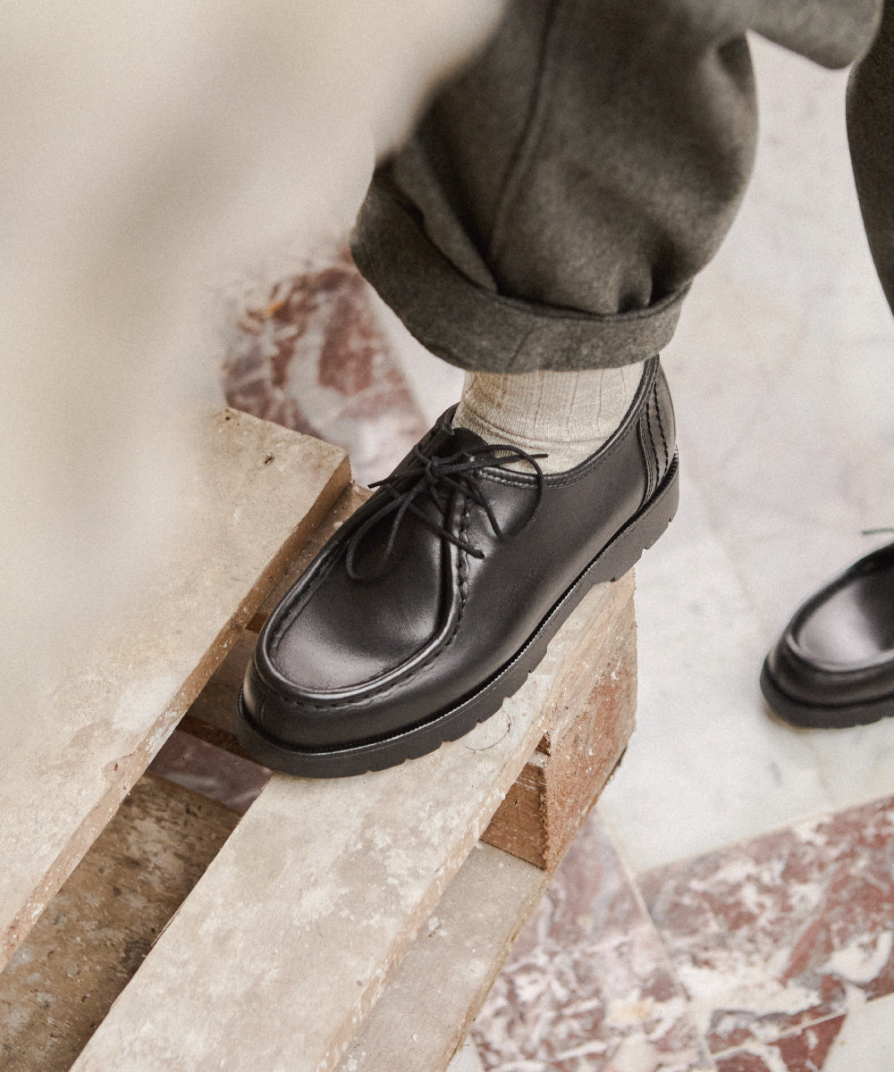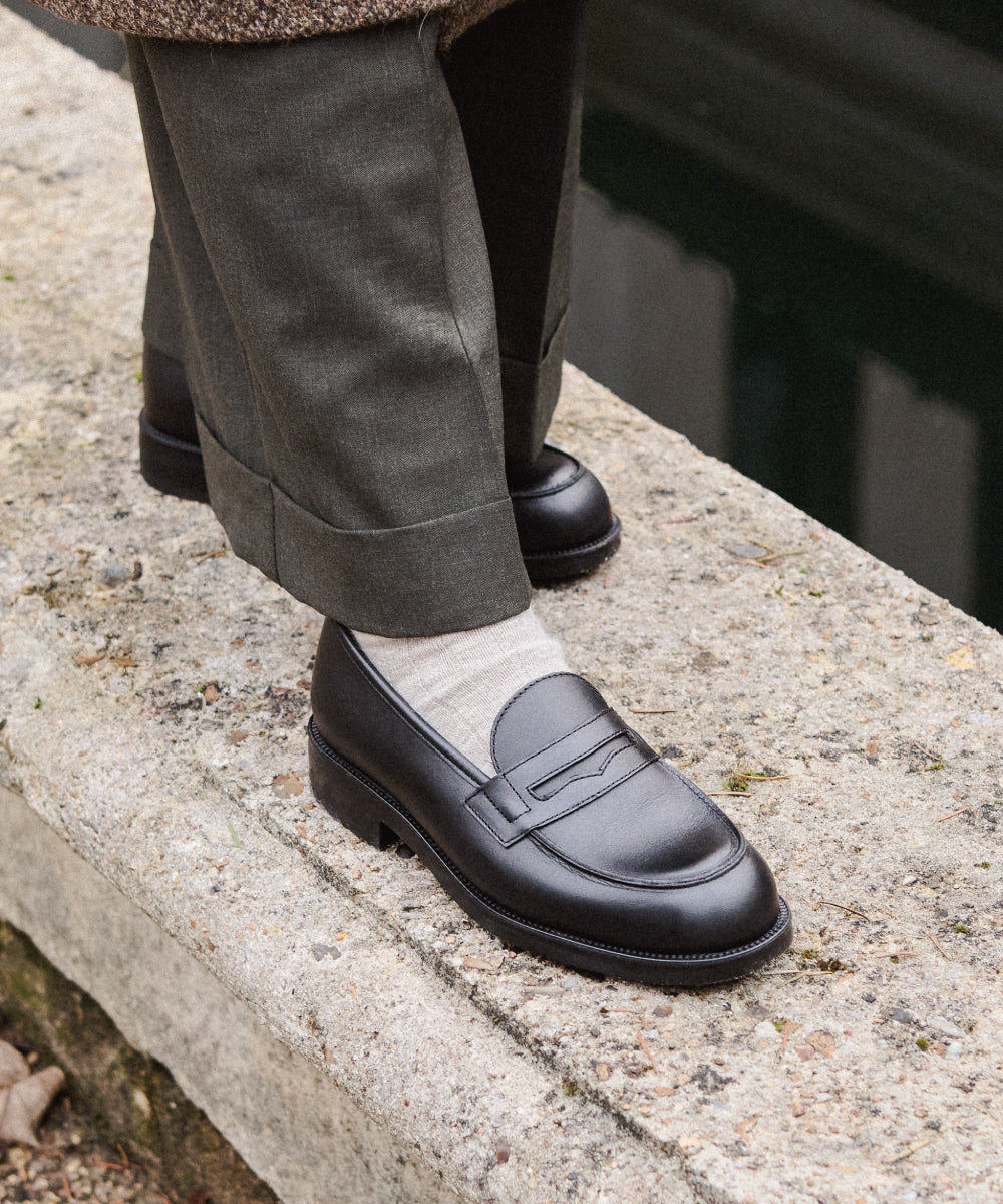 洗練されたデザインが際立つ、ブラックレザー製の最高級ローファー"DALIOR(ダリオール)"