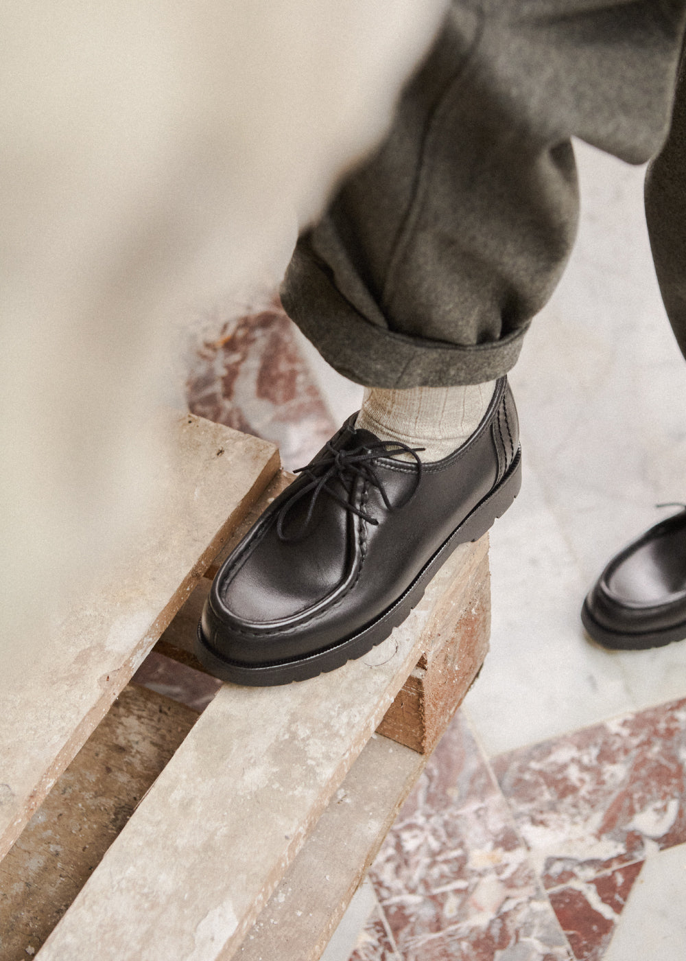 すっきりと落ち着いたラインで、軽いヒールが上品さを演出します。フランス製のこのモカシンは、KLEMANブランドの象徴的な特徴をすべて反映しています。